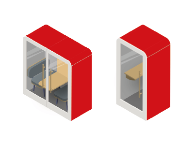 en savoir +Profitez de deux cabines acoustiques, une individuelle et une pour deux personnes.